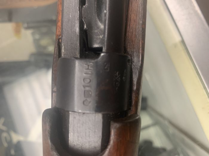 Is the marking like a very small crest? The rifle I have seen has a small crest and a serial type# of 101-H stamped beside the small crest. The stamping is so small a magnifying lens is needed.