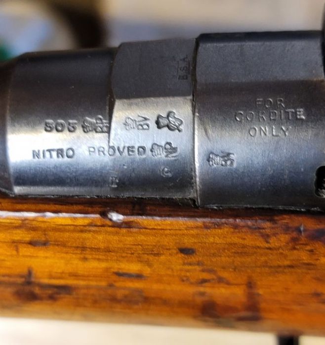 I have a C.L.L.E. that was later rebarreled so somewhat amusingly it has the "For Cordite Only" stamp on the receiver ring with "Nitro Proved" on the barrel. Interestingly, it's serial number is '1".