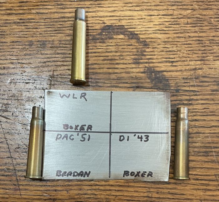1943 and 1949 WRA Mk VIIz Boxer Primed 1945 DAC Mk VII Berdan Primed The WRA rounds are loaded with NC powder, but the US was using corrosive large rifle primers in WWII for their own ammunition production and did not make the change over to non-corrosive until 1951. The Dominion rounds are cordite loaded, so possibly have chlorate primers. Will do the test again and see what happens. This time will pour some boiling water down the bore before cleaning with Hoppes 9, just in case they are corrosive. |