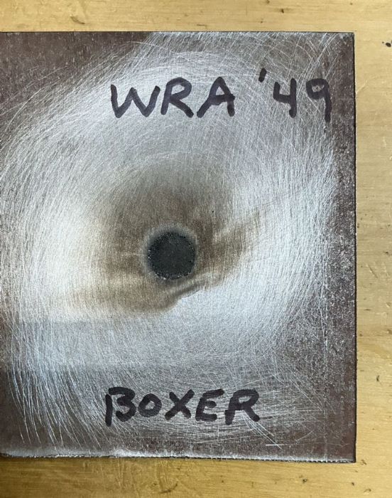 ![]() ![]() Looking closely at the DAC ‘51 Berdan sample, there may be some light pitting showing. It’s been in the Humidor for a week now. But the WRA ‘49 is much worse after less than 24 hours, very dark and surrounded by light rust forming. At some point, I’ll clean these to remove the fouling (with Hoppes 9) and see if there is any pitting. The WRA ‘49 is on the back side of the sheet, was an afterthought. |