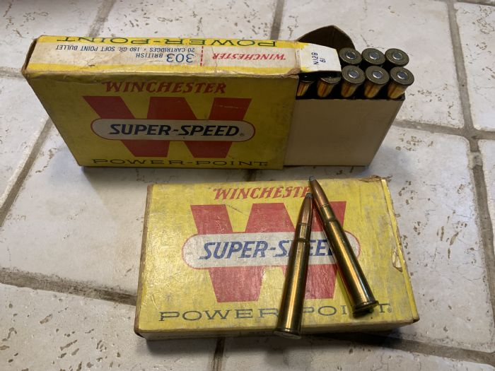The only old 303 I have are a couple of the yellow boxed Winchester, I think from the 60s. 5 of the 40 rounds are missing. 180g sp, which claim a MV of 2540 fps and 2580 fp of energy. I guess they’re not that old compared to others mentioned. It’ll probably shoot them.