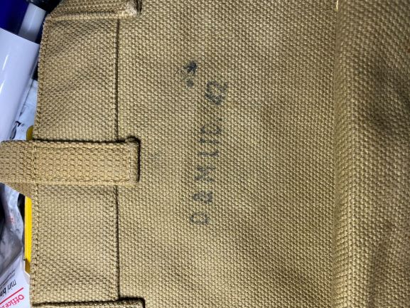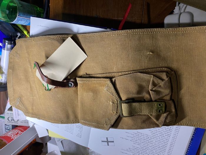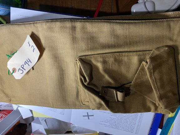 I purchased these two rifle cases from 1942 and 1943 respectively. I researched the Broad Arrow 2 for the manufacturer identifiers and could only locate D&M Ltd, a british manufacturer identified as a Oil Bottle SMLE WWI. I could not locate the M&Q or D^126. I have a lot of questions: 1) Can you identify the manufacturer or the national origin? 2) The webbing/material is quite different between the two - this is probably significant. 2) The external pouch opens in opposite directions (one towards butt, the other towards barrel) 3) My No.1 MkIII* doesn't quite fit - the rifle fits in, but the closing flap wont close - maybe 1-2" short. This was disappointing. I thought maybe these were Canadian and/or designed for the No.4 and I checked the overall rifle dimensions - they vary by 0.1" (44.5 for the No.1 and 44.4 for the No.4) so this is likely not the problem. I have one other rifle case almost identical to the D^126 and my No1 MkIII* rifle fits perfectly. Could the case shrink this much over the years? A couple of usage questions: What goes in the external pouch - I assume ammo? Where does the solider store his bayonet? And finally, how were these deployed in the army - would a soldier carry a case into forward deployment, or would they be used on base, or training etc? Looking forward to the conversation. NOTE: EDITED TO REMOVE THE FAULTY IMAGES. |