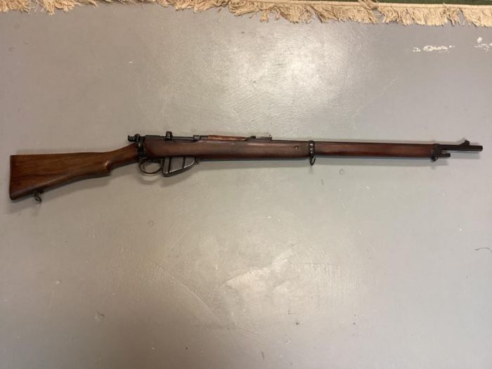 She`s in fine shape. It is a commercial BSA no date or WD marks on it any where other than missing front sight protector and the wrong cross screw for the nose cap, I`m quite pleased with my self. I do have the rear volley and dog bone spring but no upper stud crew to secure the peep arm. I`ll figure that out, probably just make one. Can anyone post a picture of the screw stud so I can see what needs doing. The wood is in near new condition, but looks to have been refinished some time ago. The metal finish is immaculate no rust no pitting. The mag is a BSA 10 rounder and the bottom finish is all warn off. Even has an oiler and a tiny .22 cal pull through, and the leather oiler bumper is present. The barrel is like new inside and out, BSA .22lr. I have an 1888 bayonet attached to hold the nose cap in proper position until I sort out the cross screw issue. All in all very happy with this old rifle. ![]() ![]() ![]() ![]() ![]() ![]() |