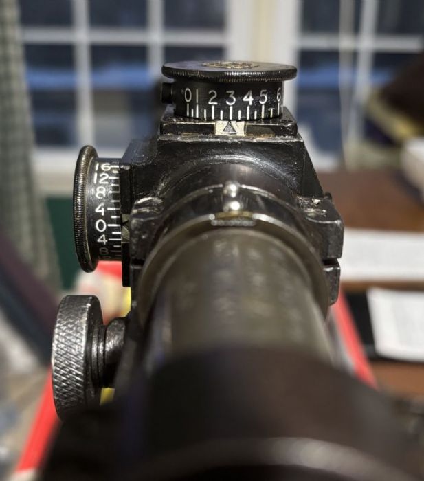 My post had commented that one of the virtues of the No. 32 Scope was its ease of dealing with range. While the 1 minute elevation adjustments might seem crude in comparison to the contemporary USMC 8x Unertl scope with 1/4 MOA click adjustments which is desirable for a target scope, but the No. 32 scope 1 MOA adjustments for purposes of hitting a man size target out to 600 yards is perfectly adequate. With just 4 clicks per 100 yards (from 100 to 500 yds) and the elevation drum range markings very visible, what could be easier to use! ![]() I’ve witnessed two of my good friends shooting the 03A1 sniper rifle getting lost on counting up the clicks from 300 to 600 yards during a match and they could not get hits on paper! |