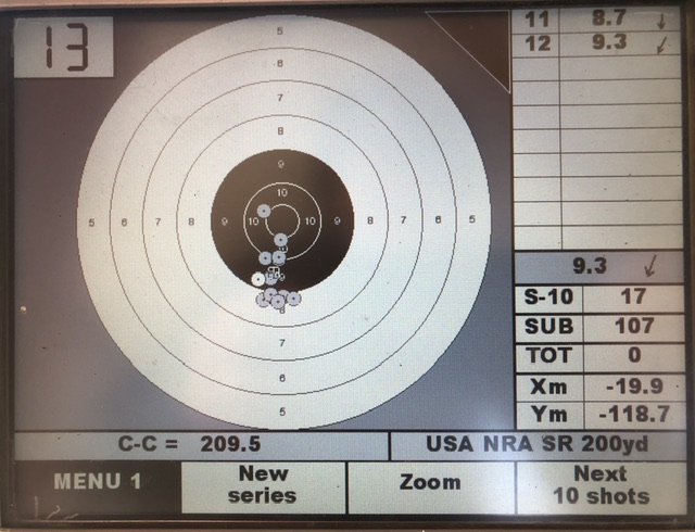 Had to fiddle with the front sight to bring the group onto target center, just very slight adjustments which I overshot a few times. Once I completed shooting the four 10 shoot groups I made one final adjustment and took three sighters to be sure I had a solid 200 yard zero: