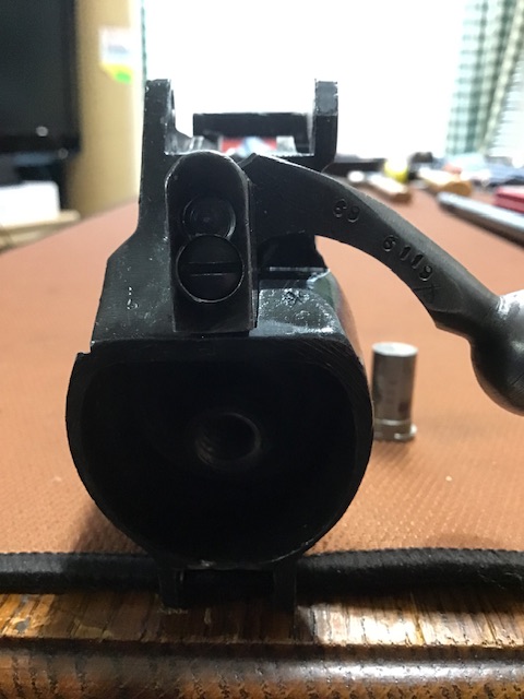 It’s ready to install. Hand tight headspace looks good. Here is the bolt position with the .070 No-Go gage and the #1 bolt head that was on the bolt.