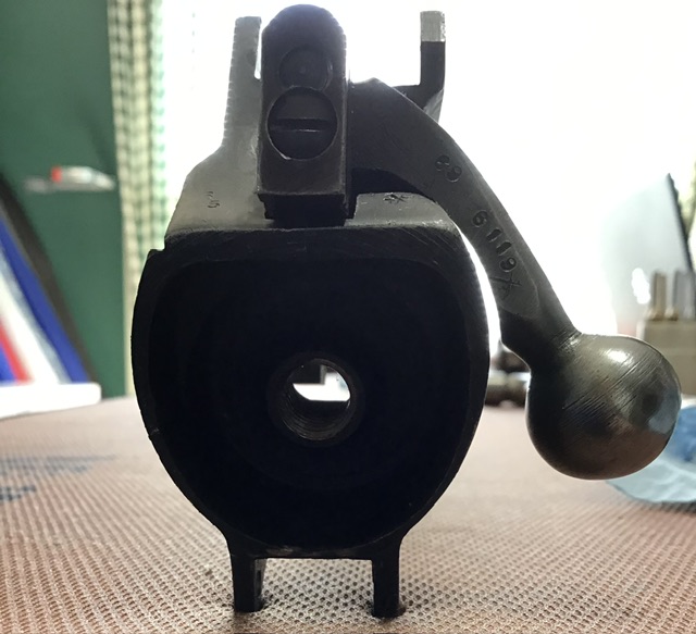 It’s much easier installing the barrel. The Criterion barrel comes with a set of breeching washers of four thicknesses in increments of .001 inch. The thinnest one seems to be the right one giving a 14 deg barrel under turn before applying any torque. The next size gave about 20 deg which I think is excessive. My measurements of under turn are fairly approximate using an adjustable protractor held on the knocks form flat and movable arm held vertical to the body.