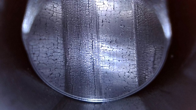 Photo below is at the front of the chamber, bottom portion is the end of case neck annd top portion the origin of the rifling.