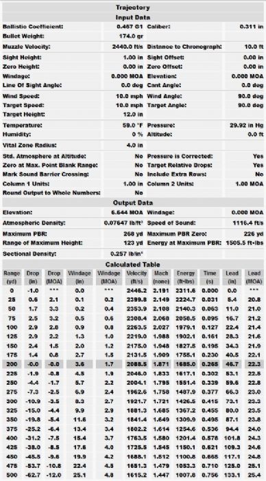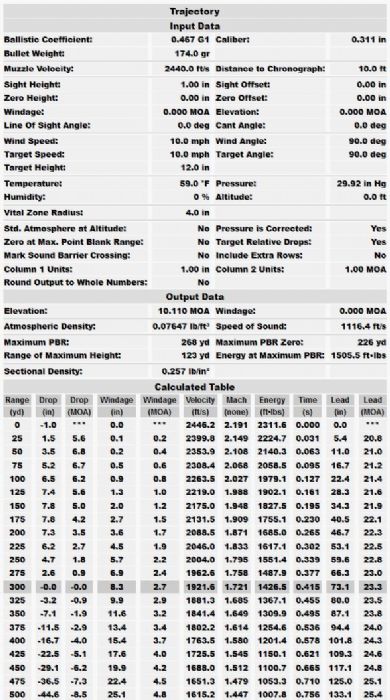 Reloading is the way to go, or buy PPU 174 gr FMJBT commercial ammunition, it should approximate Mk 7 trajectory fairly well (it’s loaded to 2400 fps). 40.0 to 40.3 grains of Varget behind a 174 SMK (2390-2400 fps) does well to replicate the Mk 7 trajectory out to 600 yds. Not likely you will be shooting a No. 4 with as issued sights beyond that. PPU Cases, Varget, and the Sierra 174 MatchKing are readily available in the US if you plan to reload. |