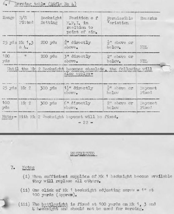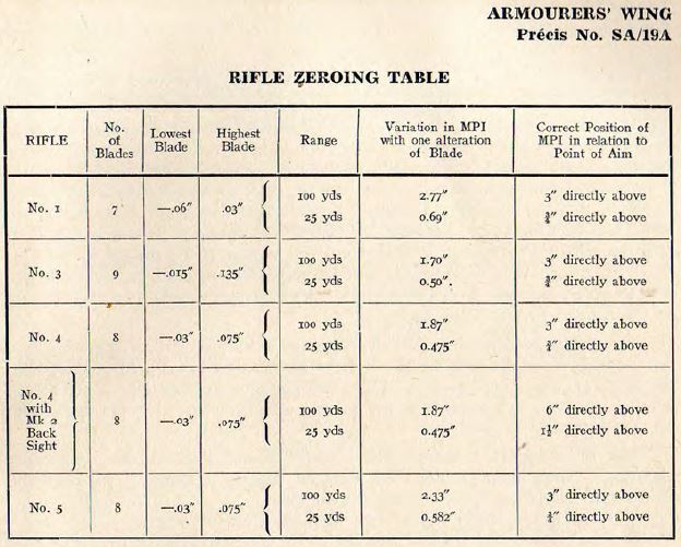 Depending on what Commonwealth country and rifle range, it could have been 25, 30, 100, or 200 yards. And if they did back then as they usually do now, confirmation of sight settings would have been fired at 300 yards prior to deployment (and perhaps in anticipation of major battles like the Normandy beach landings, Market Garden, etc). And then there's 4 (ARMT) TRG BN REME Precis No. 28, Rifles No. 4 In some cases, the last known pam with zeroing instructions from the Canadians for the No. 4 rifle in particular, they couldn't agree on how much they should have POI over POA when zeroing for 300 yards. People who have sufficient rifles and back sights to play with (i.e. SAIs working with Canadian Rangers and some collectors) have discovered that the battle sight apertures often aren't correctly indexed with each other. And even more so with battle sight apertures and the adjustable sliding apertures. Not surprising, giving the exigencies of wartime manufacturing. Tooling got worn out, jigs got out of adjustment and that wasn't picked up by an inspector at the end of another long shift, etc. The only ones who probably care about that are competitive shooters seriously into competing in the events where the issue sights must be used. The Canadian instructions were that the rifle should be zeroed 2.5 MOA higher than the Brits. Same rifle, same ammunition: different zeroing instructions. Clear as mud? |