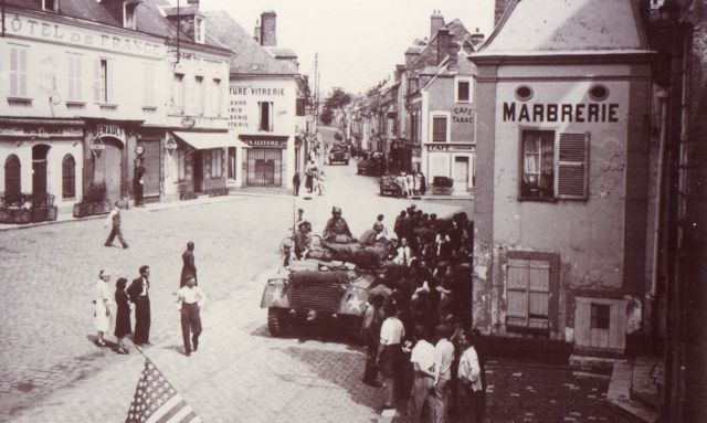These first few are from mid August 1944; the town is Bonneval, France. ![]() local resistance fighters, possibly one of those Enfields is the one I aquired recently! We are currently trying to identify some of the fighters. ![]() parade in front of the "Mairie" (town hall) which has the French flag raised (out of shot) ![]() locals and US soldiers in the centre of town, the cafe behind is still there. Get my Saturday morning coffee there. There a lot more to come from this wonderful archive; although it's just a small slice of history! I would enjoy seeing other peoples photo's; please share if you have some! Zed.