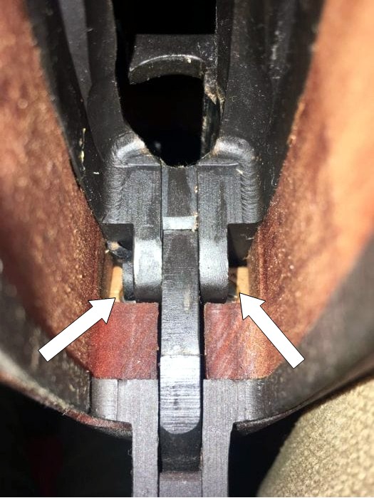 So, when are you sending it on to me?" OK the "recoil blocks" Little brass pads screwed into the front faces of the recoil shoulders inside the stock. The protected the slightly softer Ausssie "Coachwood" stocks. NOT all HAD them, but its a good thing if yours does. To see: Remove the magazine & invert the rifle. Look up into the magazine well & to the rear. SA slim flashlight will be a BIG help. you should just see them bottoms of the square brass blocks peeking out from behind the action.