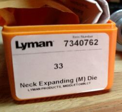 That will definitely work. Lyman doesn't call or label it ".338 Win". Or they didn't in the past. Just as they don't label the M die for .303 British that way (I think it's labeled "30L" or something like that. Anyways, I was mildly surprised to see The Usual Suspects in their online catalogues are all 'out of stock' for both the 8mm M die and 33 M die as well Lyman's website is more of the same. I had use a Lee universal neck expander (or whatever they call it) to add a little flare to the case mouth so the neck expander would enter the neck instead of collapsing it in on itself. I suppose I should chuck the mandrel in a drill press or whatever and put a bit of an angle on the end so it enters case necks just as it is. But it's a once in a decade operation, so I've never bothered actually doing it.