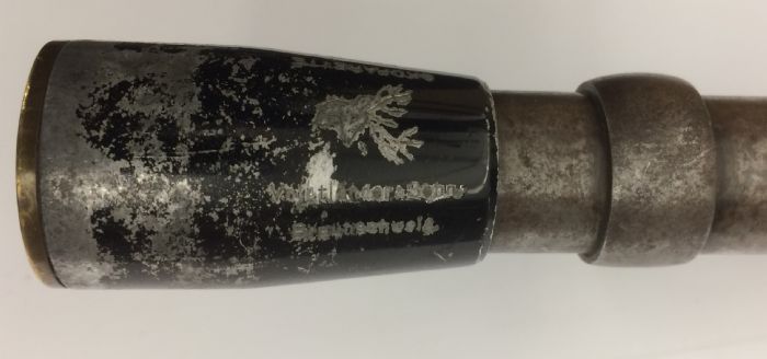 A couple of photos of the scope markings, really cannot read them from the photos. They say "Voightlander & Sonn, Braunschweig, Skoparette, No. 19428"