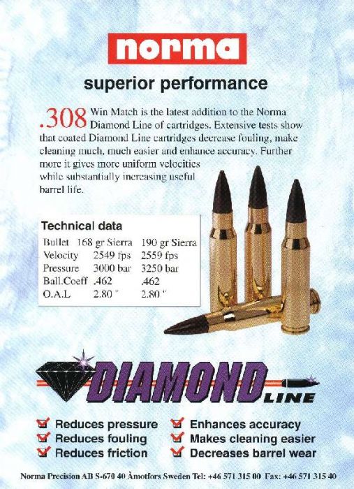 The other good reason to hand load is you have full control of the variables, like chamber pressure. I decided I would not shoot .308 Win factory loads thru my DCRA, not knowing how close they are to .308 Win max pressures with the chamber/throat on my No. 4 7.62 conversions. They are all probably fine, but no good reason to take the chance when you can handload. The claim that Norma is making that the diamond line (moly coated) bullets substantially increases barrel life is interesting. Barrel life is governed by throat erosion and that has a lot to do with powder burn temps and pressures. While the claim might be true in the sense that a one for one substitute of a plain jacketed bullet with a moly coated bullet keeping the same powder and charge weight would slightly lower pressures due to lower friction, bullets loaded to the same velocities seems unlikely there would be much difference in barrel life. NOS Enfield hammer forged heavy barrels for the L39/L42/Envoy must be very hard to find. But if the barrel life is truly doubled by substituting a plain jacketed bullet for a moly coated bullet, I would probably do that. Alternatively, you can shoot reduced pressure loads for short to mid range work, save the “full” pressure loads for long range. Factory ammunition is usually loaded to magazine length. You can substantially reduce pressures by seating bullets further out if the throat length allows it, which is the case for my DCRA 7.62 conversion. For 800, 900 and 1000 yards, I’m loading the Sierra 168 grain Tipped MatchKing (TMK) seated to a OAL of 2.95 inches, .020 inches off the lands. Cramming that long bullet in the case to a 2.81 OAL reduces case volume significantly with a corresponding pressure increase. I’m not seeing any load data specific for the TMKs, yet we know that when seated to the same length as the SMK, they must result in higher pressures for the same charge weight. |