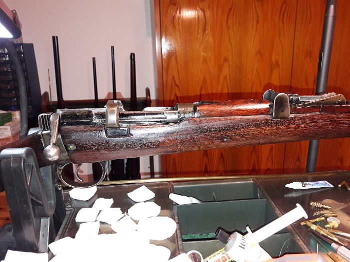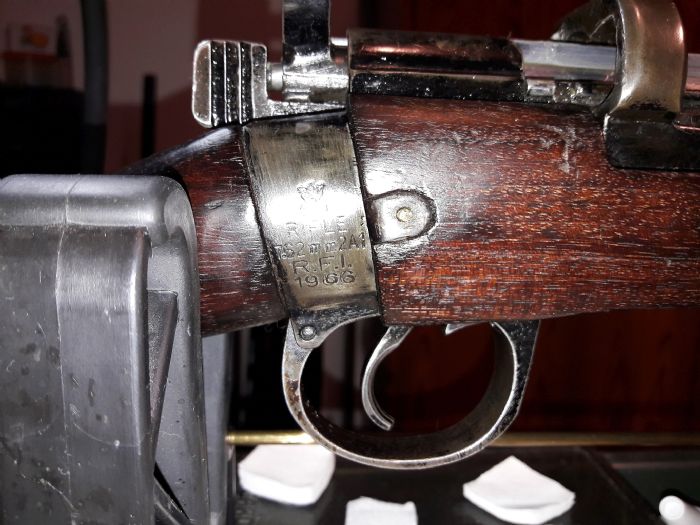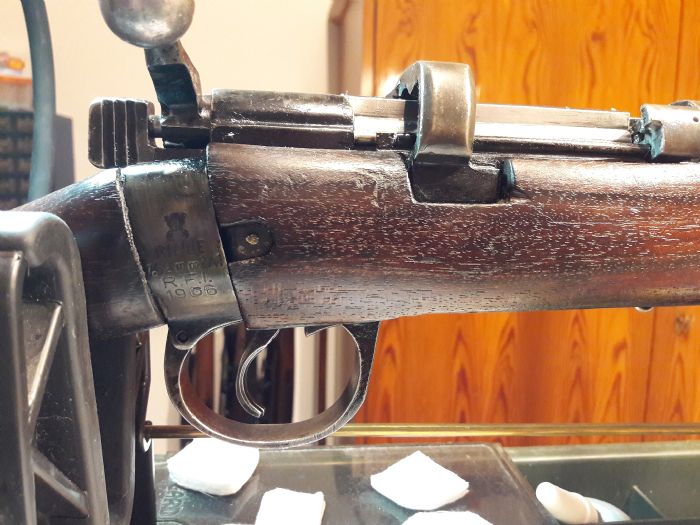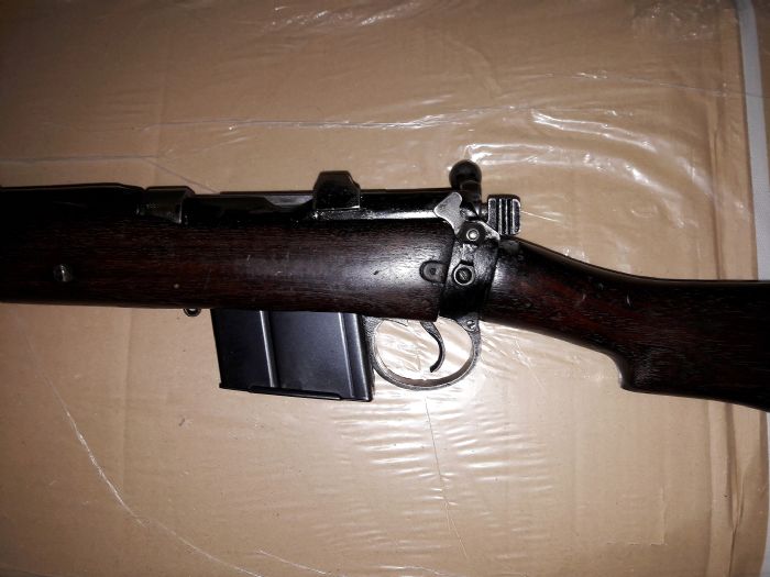 This thread is just to show my Ishapore. Bought it just before Christmas. Tested it only with dummy rounds ( parking lot buy, after internet offer ). Although it´s clearly marked "2A1" it has the 2.000 sight. Wood is, IMO, very beautiful, looks like polished Teak. Bolt is slick like ... an Enfield. ;-) I cleaned it, test fired at 20 m only until now. The original mag is numbered, but not to the gun. And looks bad. Holds 10 rounds, ok, I might squeeze in 11, but cannot seat on a closed bolt then. BTW, ANY Ishapore I could find in Europe offered for sale, including some which were chopped to "Jungle Carbine", has a 10 rd mag. So who says, the 12 rounders are the standard? Couldn´t verify this. I didn´t know this, when, immediately after buying the gun, I started looking for accessories, specially magazines. Especially 12 rounders. Nothing. Yes, Numrich ( now other name ) might have after market 10 rounders, but will not sell outside US anymore. Same story with ALL US companies! But there came help: GOOSIC! Praise! Goosic sent me a mag. Made it clever, so it went clear through customs - no hassle, no costs. THANKS!!!!!!!!! The mag is an aftermarket 10 rounder, I think, but might be Arsenal new. What I DO know is, that it sits supertight in the mag well, and functions perfectly! THANKS, Goosic! I already know, where to by Enfield parts. I already have the Holy Grail in hands: I got a Parker Hale No 5A!!!!!!!!!!!!!!!!! ( Thanks to a member from another forum! ) Next step is grouping at 100 m with different ammo. See, what she likes. Get an appropriate front sight, so the rear sight is exactly "on"? Perhaps get a spare extractor spring for a rifle No 1 Mk III? And then, the decision: put the P - H on it, or get a Jungle carbine bubba´d Ishi, and put the P - H on that? ( -> Crocodile Dundee )( = longer sight line, like in a real No 5 ) Get another Ishi, which shoots good and isn´t as beautiful, and put the P - H on that and go Service rifle competition, and preserve my Beauty as it is? Forget about collector value, and get good wood rear stock and front forearm, and have the rifle with full lenght bbl and P - H peep sporterized? Thanks to all for their help, and SPECIAL THANKS TO GOOSIC! Hermann P.S.: did I say THANKS to GOOSIC?