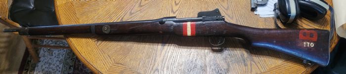 Also known as rifle no.3 It seems the volley sight has been removed which could have been done by the military. They stopped volley sight. Eventually naming that the No.3 Mk.2 This rifle misses the top wood handguard. Also the bands and even the frontsight. This rifle is not fit for shooting. This one is made by ERA ( eddystone/remington arms). It seems like an No.3 Mk.I* but not 100% sure. Need some more detail photos. They made changes to the bolt lug in 1916. They enlarged them and they changes the name to No.3 Mk.I* The No.3 Mk.2 is a later ww2 modification where they were fitted with a new stock without volleysight. (More like the us model of 1917) What else would you like to know? |