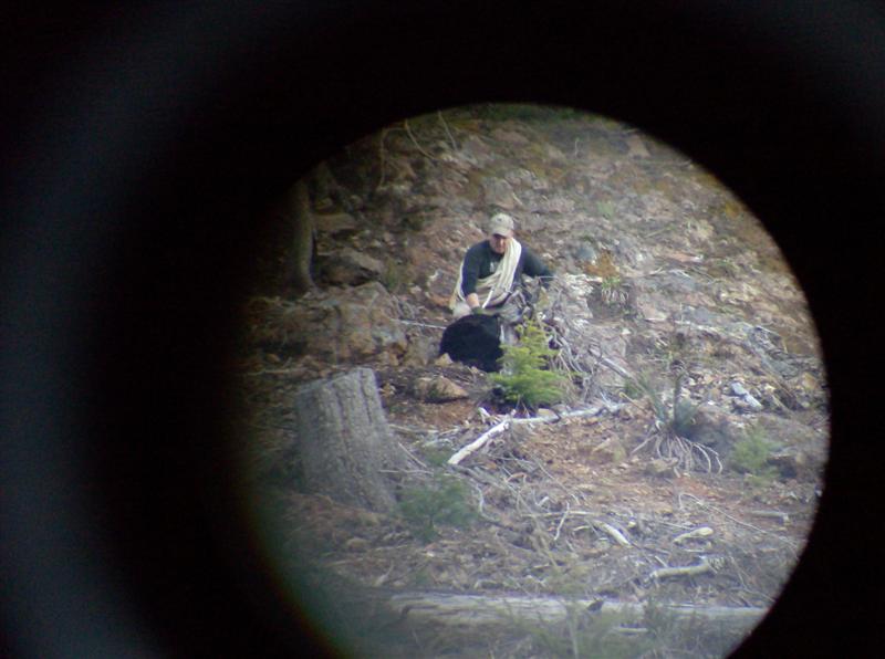 I got another couple bears in that drainage, one looks to be a biggun. Having a hard time getting a good look at him and he refuses to present a shot. I shall continue till he is in the bag