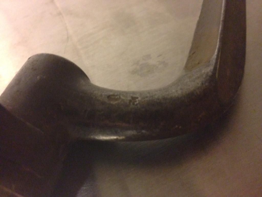 A Markings on elbow (shank): none Locking collar: outer diameter is 1.18 inches (left to right) – inner diameter is 1.02 inches (left to right) – opening has bump-out to accommodate front sight Bore: inside is .71 inches – outside is .87 inches Elbow (shank): length is 1.6 inches Shoulder: .5 inches in diameter Mortise: zigzag (?) Socket: 2.67 inches in length Overall length: 20.75 inches Blade length: 18.5 inches Blade width (at maximum): .78 inches Two-fuller (groove) blade with curved bottom