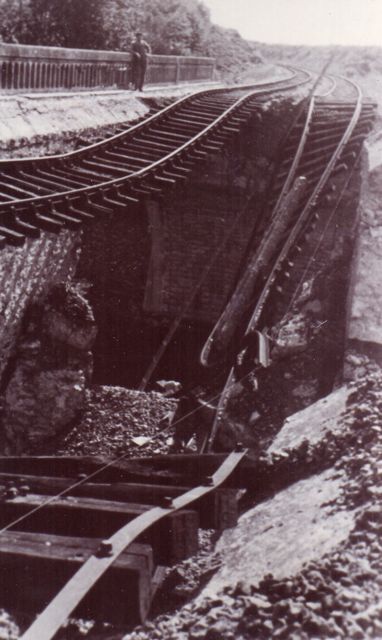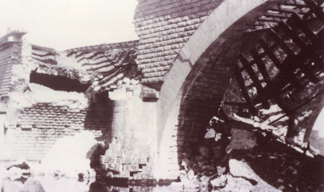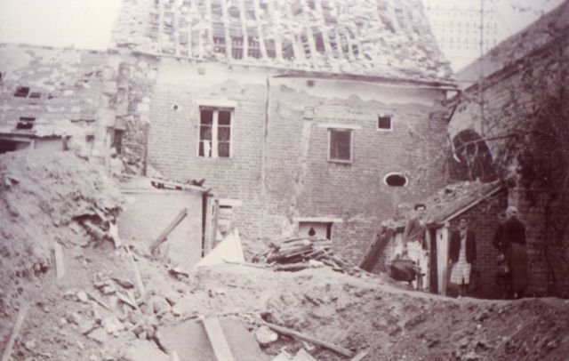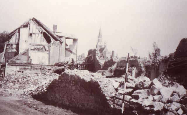 The US Air Force bombed the town just before the liberation. They were aiming for the railway bridge; but unfortunately they missed the bridge completely; although not by much! You can see it next to the remains of one of the houses.